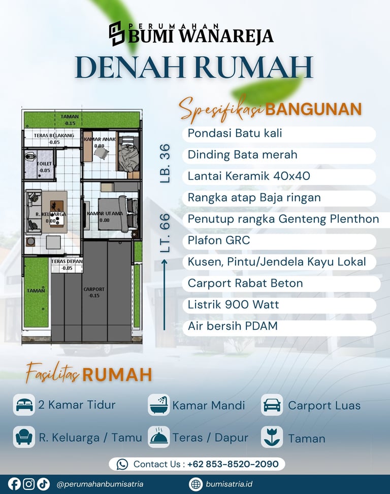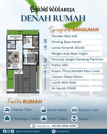 Menghadirkan hunian yang memadukan kualitas dan kenyamanan, Perumahan Bumi Wanareja menggunakan material pilihan di setiap sudut bangunannya. Dengan pengerjaan konstruksi yang mendetail dan profesional, kami memastikan setiap rumah memiliki daya tahan maksimal, memberikan rasa tenang serta kehangatan bagi keluarga Anda.