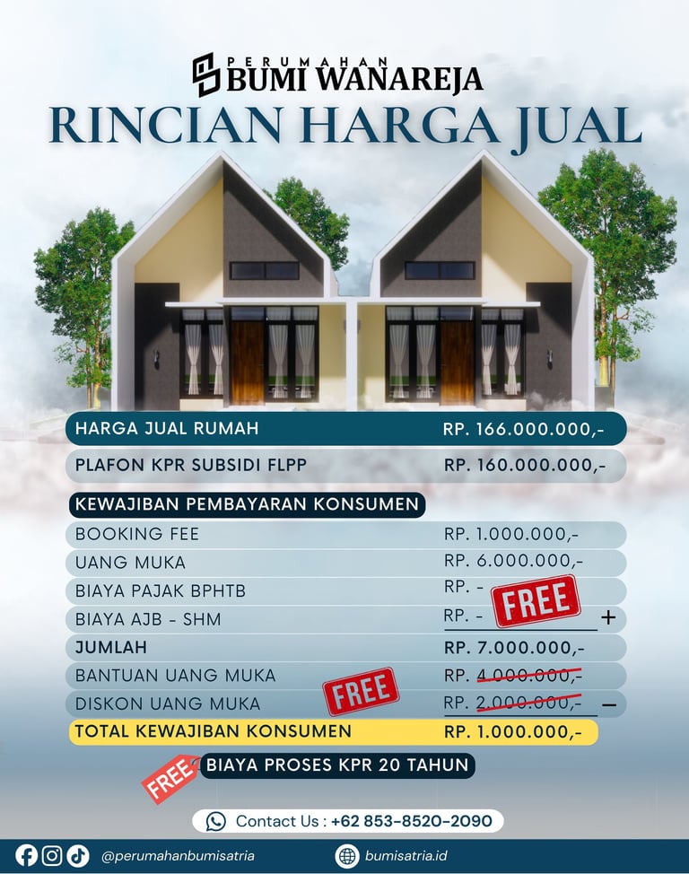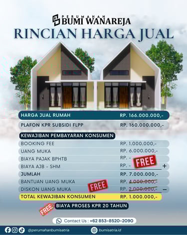Cari hunian ideal yang nggak nguras kantong? Bumi Wanareja tipe 36/66 jawabannya! Harganya sangat bersahabat dengan luas lahan yang pas dan efisien. Ditambah lagi lokasinya yang strategis dan fasilitas yang komplit, bikin hidup makin praktis. Jangan sampai kehabisan, yuk segera amankan unit rumah impianmu sekarang juga!
